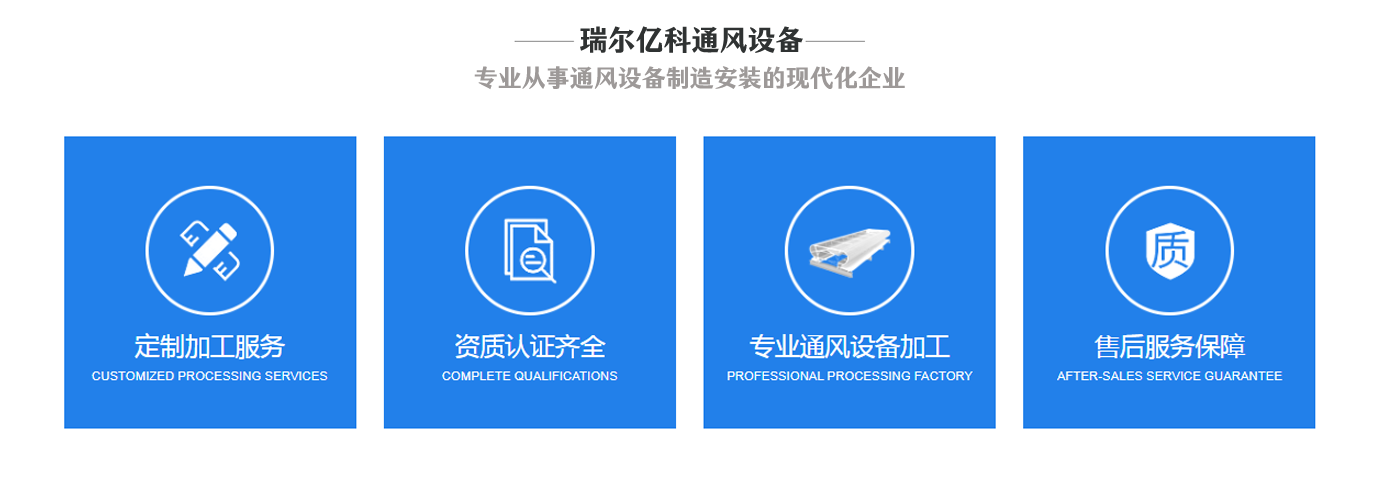 山東瑞爾億科通風(fēng)設(shè)備有限公司,自成立以來,一直專注于車間廠房通風(fēng)換氣領(lǐng)域,是一家集設(shè)計、生產(chǎn)制造、銷售、安裝于一體的現(xiàn)代化通風(fēng)天窗源頭廠家。 山東瑞爾億科通風(fēng)設(shè)備有限公司憑借多年的設(shè)計施工經(jīng)驗和一支扎實的工程安裝團(tuán)隊,在車間廠房通風(fēng)換氣、消防排煙方面取得了多項天窗設(shè)計專利。依靠科學(xué)的管理和誠信為本的經(jīng)營理念,嚴(yán)控產(chǎn)品質(zhì)量,精益求精,致力于為客戶提供優(yōu)質(zhì)的產(chǎn)品和服務(wù)?! 」局饕a(chǎn)品涵蓋了通風(fēng)氣樓,一字型排煙天窗,薄型通風(fēng)天窗,三角型消防排煙窗,圓拱型通風(fēng)天窗,通風(fēng)天窗等多個通風(fēng)設(shè)備,廣泛應(yīng)用于各種工業(yè)廠房和商業(yè)建筑?! 靶抛u至上”是山東瑞爾億科通風(fēng)設(shè)備有限公司的經(jīng)營宗旨。公司始終將客戶的需求放在首位,不斷努力為客戶提供優(yōu)質(zhì)的廠房通風(fēng)換氣方案和完善周到的服務(wù)。山東瑞爾億科通風(fēng)設(shè)備有限公司期待成為您忠實的合作伙伴,共創(chuàng)美好未來!...